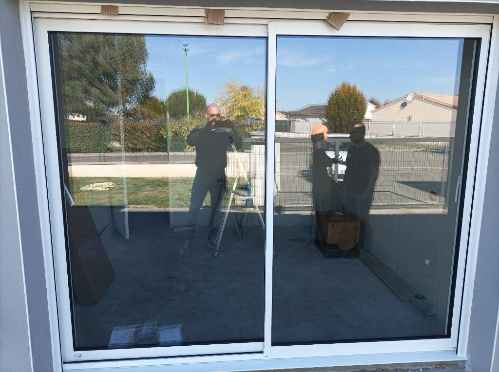 Pose d'un coulissant en aluminium blanc de chez Castes Industrie