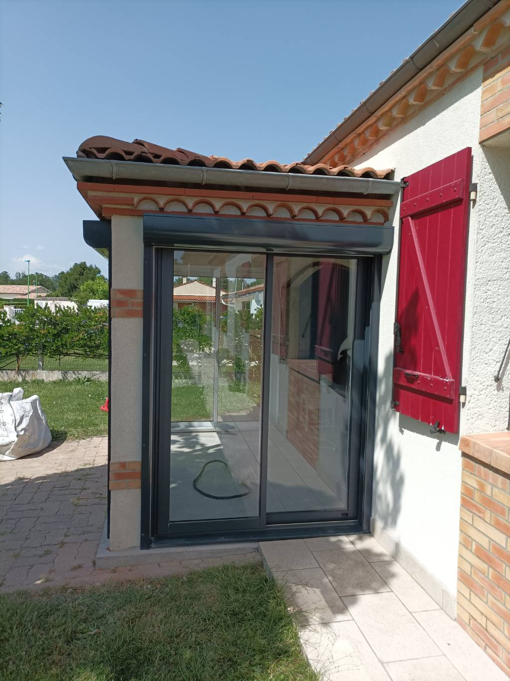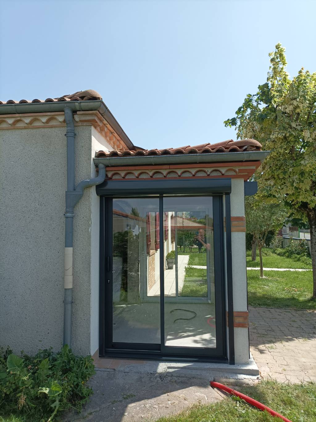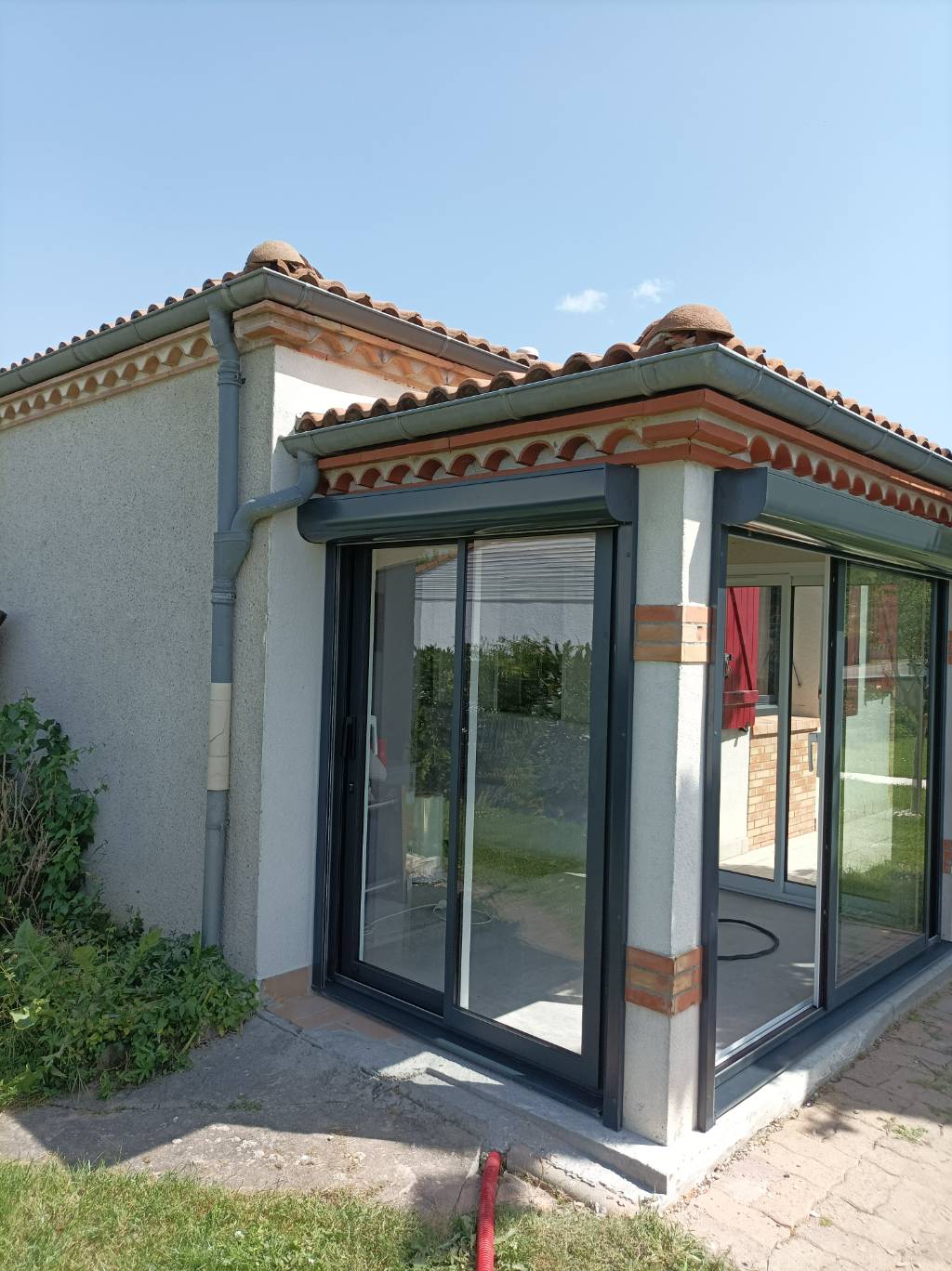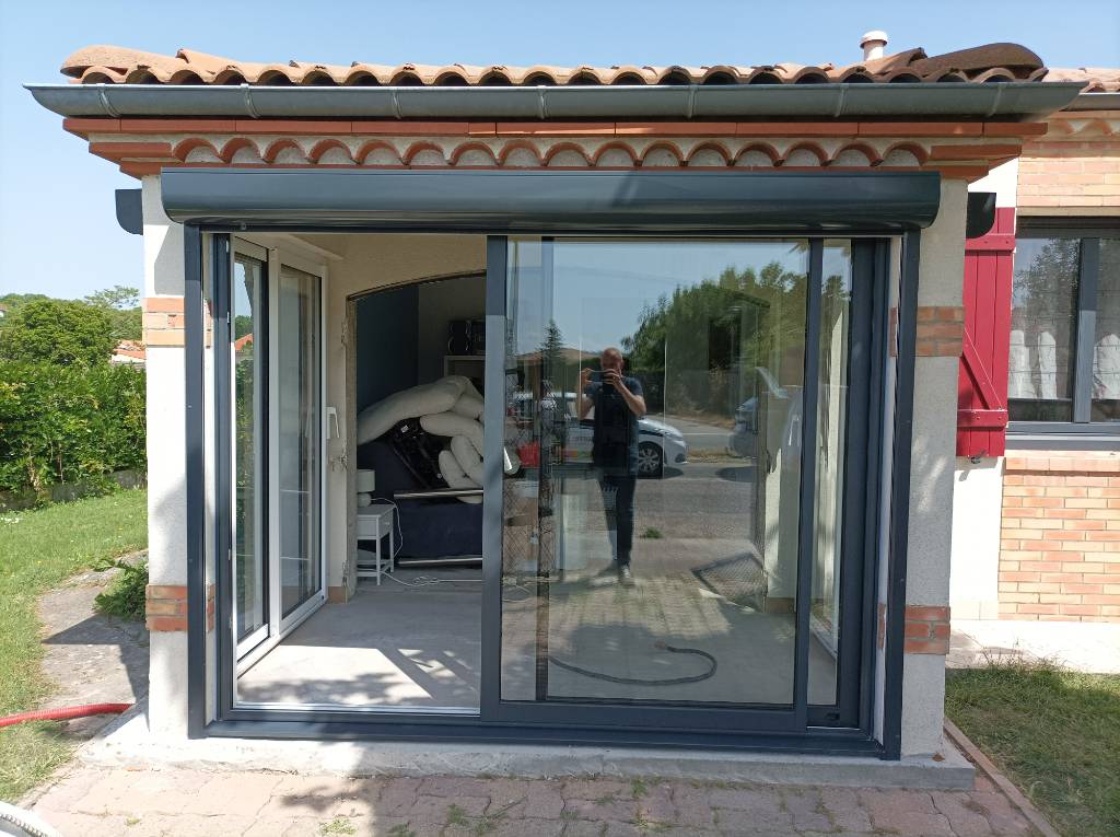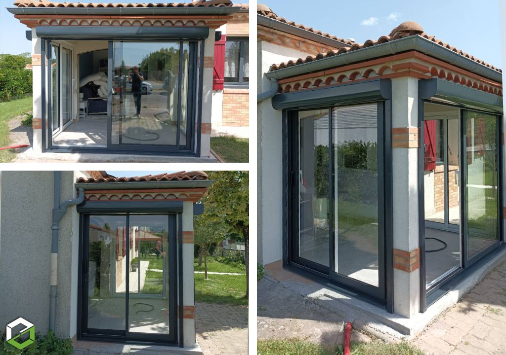 Le client souhaitait profiter de sa terrasse toute l’année en la fermant avec des coulissants nous avons donc réalisé plusieurs coulissants à deux vantaux sur deux rails de la gamme CA65 parfaitement adaptés aux dimensions de chaque tableau de la maison avec un dormant isolant de 65 mm et des ouvrants robustes de 44 mm assurant confort et performance thermique chaque coulissant a été réalisé en bi-coloration avec une élégante couleur intérieure blanc trafic RAL 9016S pour illuminer l’intérieur et une finition extérieure gris anthracite Pictural RAL 7016P qui s’intègre harmonieusement à la façade apportant modernité et raffinement les couvre-joints intérieurs de 29 mm sur les quatre côtés assurent une finition soignée et uniforme tandis que le double vitrage 4/20/4 FE avec gaz argon et intercalaire aluminium noir garantit isolation thermique et phonique tout en laissant passer un maximum de lumière naturelle l’ouvrant principal de chaque coulissant est équipé d’une poignée Sarena blanche et le vantail secondaire dispose également d’une poignée intérieure assortie sans aucune poignée extérieure pour un design épuré et contemporain le rail en inox avec chariot intégré assure un glissement fluide et durable offrant confort et facilité d’utilisation l’ensemble des coulissants transforme la terrasse en un espace protégé lumineux et esthétique tout en permettant une ouverture sur l’extérieur selon les envies du client et la pose a été pensée pour s’adapter parfaitement à la maçonnerie existante mettant en valeur l’architecture de la maison et créant un espace de vie extérieur fonctionnel et agréable en toute saison