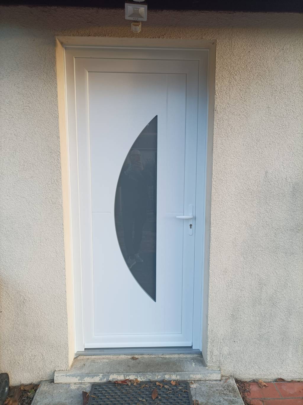 Un client souhaitait changer sa porte d'entrée en bois par un matériau sans entretien. Une entrée élégante, sécurisée et performante grâce à notre service de pose de portes d’entrée en PVC.