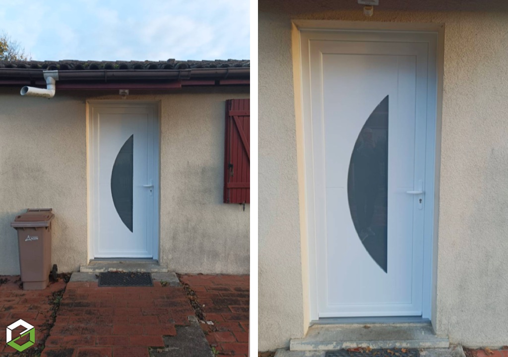 Installation d'une porte d'entrée en pvc blanc CASTES INDUSTRIES