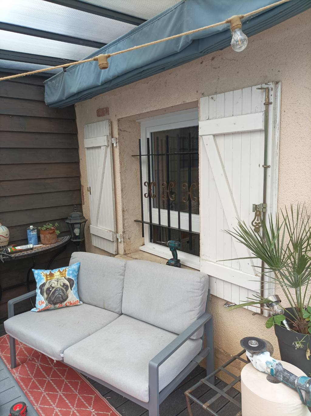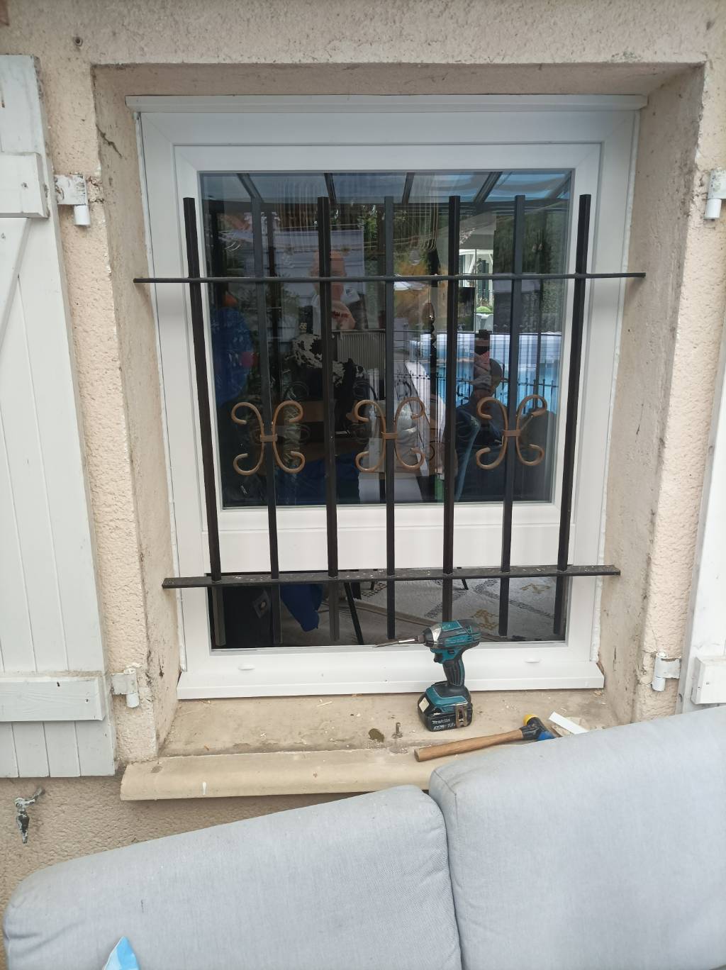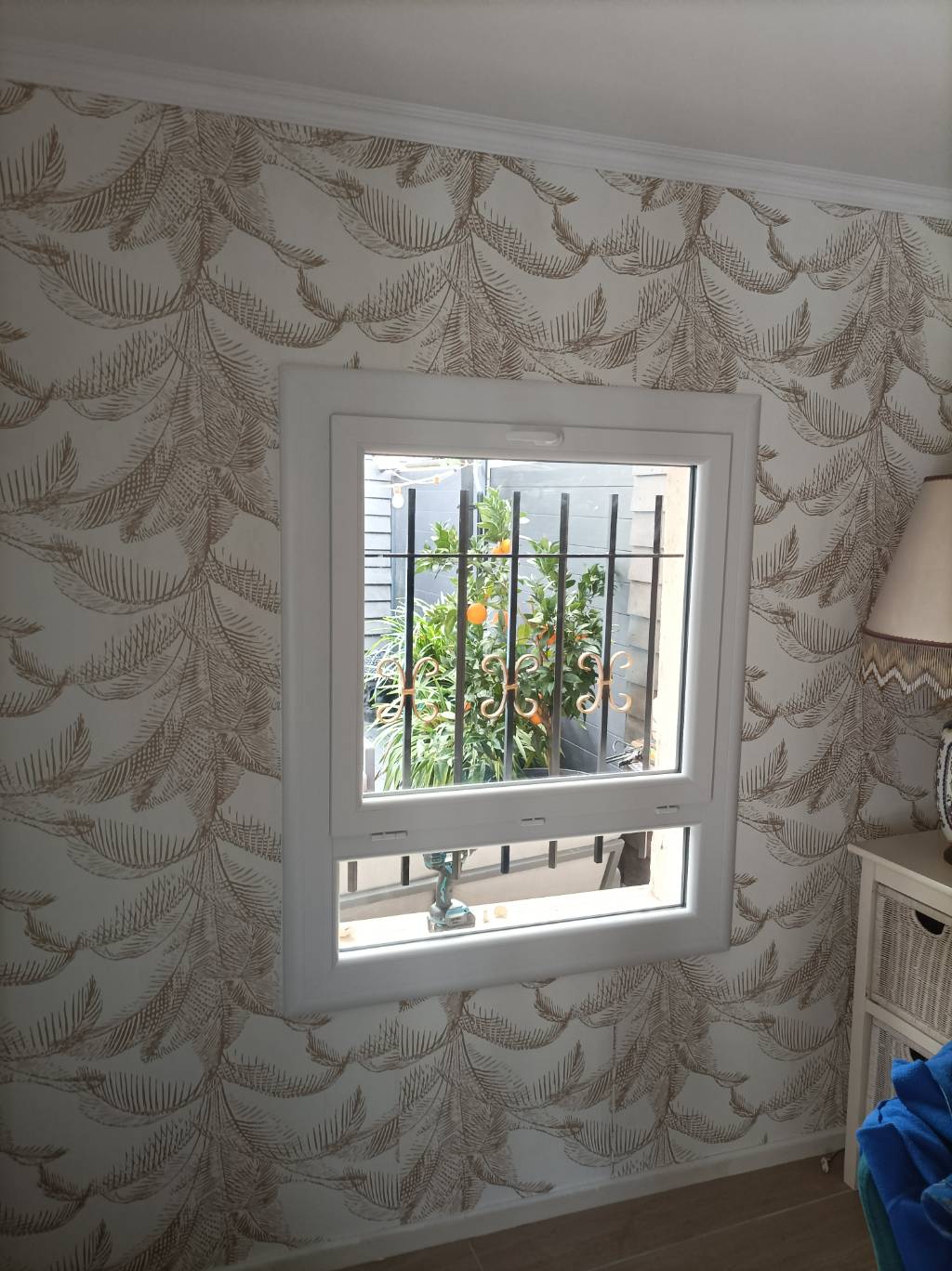 Chez une ancienne cliente de la boutique, nous avons effectué le changement d'une vieille fenêtre en bois par un ensemble composé en pvc blanc d'un châssis fixe en allège (partie basse) et d'un châssis ouvrant 1 vantail pour un gain de luminosité plus important.