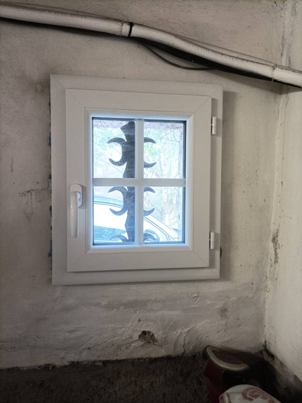 La fenêtre posée, issue elle aussi de la gamme FP72, garantit une parfaite cohérence esthétique avec les portes-fenêtres. Installée sur appui rapporté, elle reprend le même double vitrage performant et les petits bois blancs, cette fois en motif 2 par 2 carreaux.