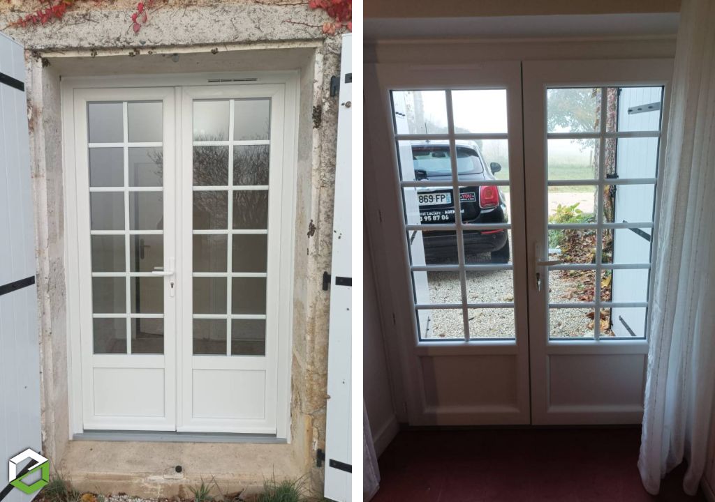 Les deux portes-fenêtres installées sont conçues avec un ouvrant et un dormant de 72 mm, offrant une excellente isolation thermique. Elles intègrent un double vitrage performant au gaz argon, idéal pour réduire les déperditions de chaleur tout en apportant une belle luminosité.