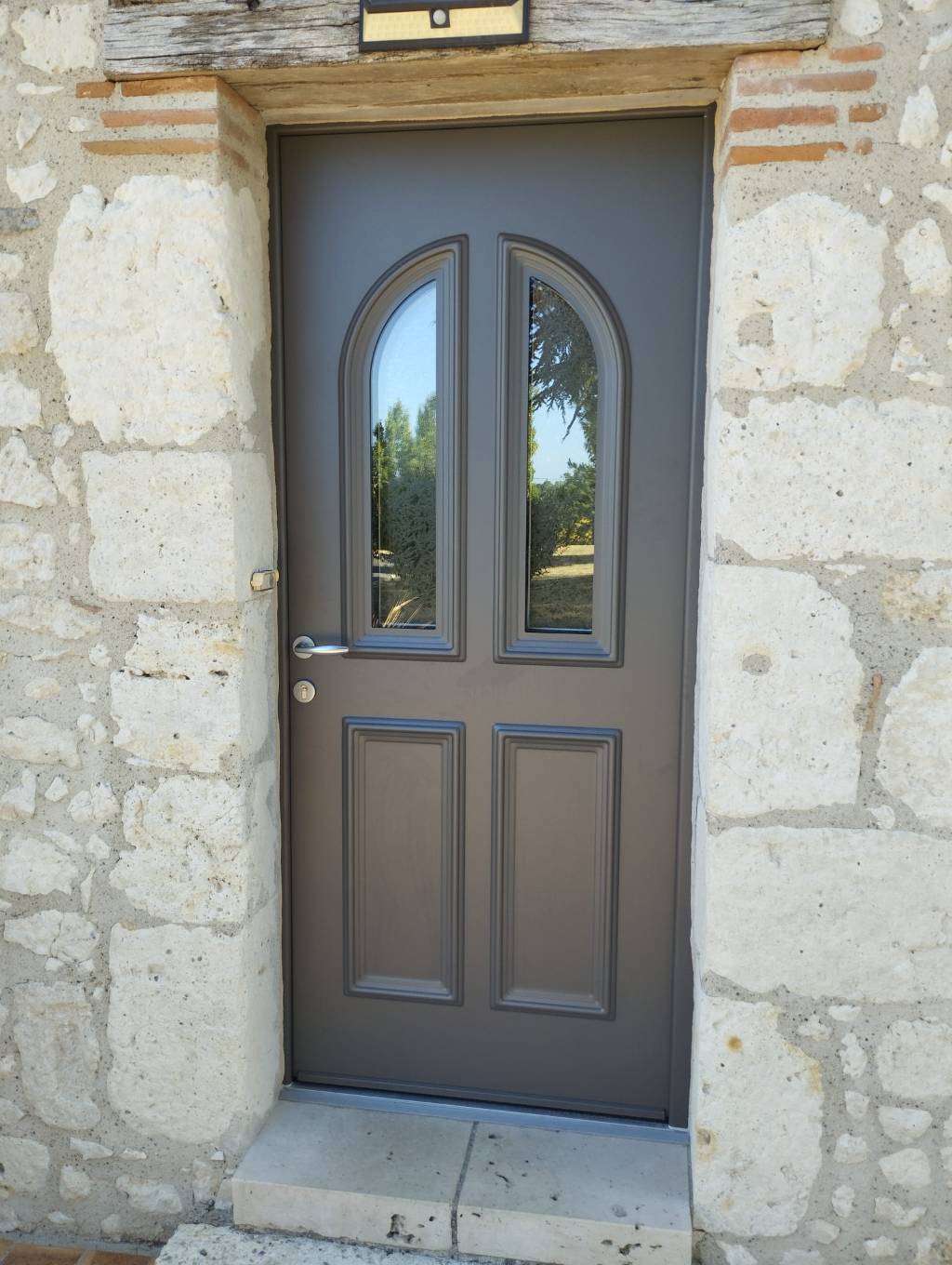 Un client a récemment contacté La Boutique du Menuisier Agen ETS Motard pour remplacer son ancienne porte d’entrée et s’orienter vers un modèle plus moderne plus isolant et plus sécurisé. Notre recommandation s’est portée sur la porte aluminium monobloc LES LUMIERES ATRIA2L qui combine design contemporain performance thermique et haut niveau de protection. Le client a choisi ses couleurs parmi le nuancier RAL et a opté pour un extérieur gris 2900 sablé associé à une face intérieure en blanc RAL 9016 mat deux teintes élégantes parfaitement adaptées à son habitation