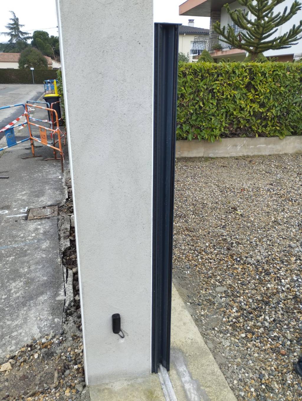 Le portail dispose d’une crémaillère adaptée pour le guidage précis sur toute sa course, ainsi que d’un profil de réception coulissant pour un alignement parfait et une réduction des vibrations. Un cache jeu avec joint EPDM est également inclus afin de protéger le portail contre les infiltrations d’eau et la poussière. La serrure n’est pas incluse, mais il est possible d’ajouter un verrou manuel si nécessaire.