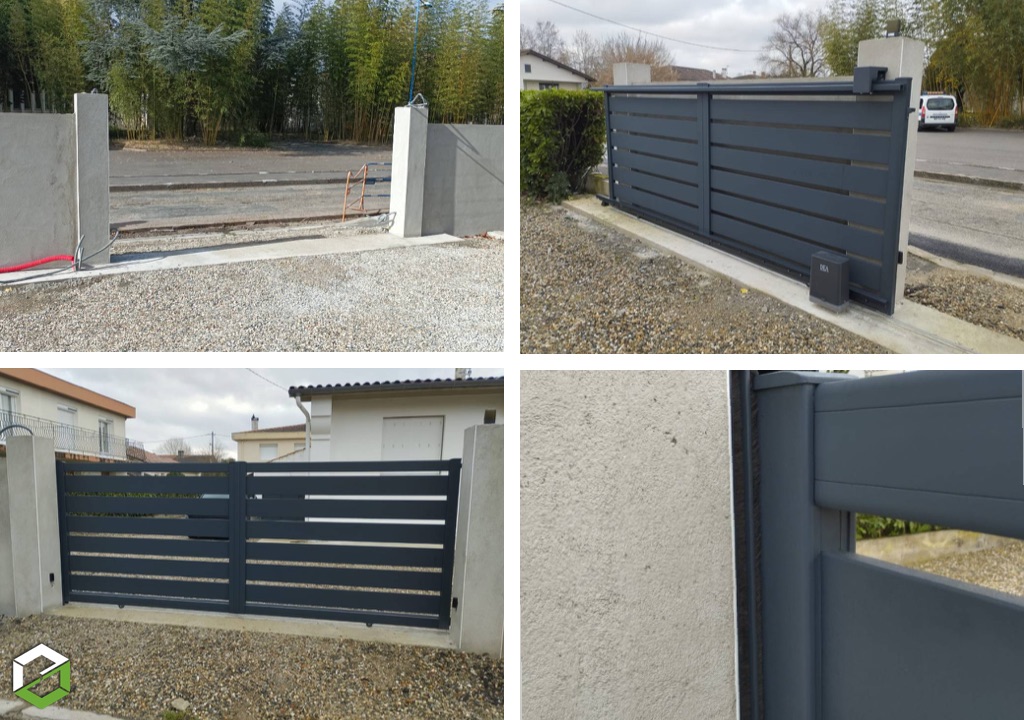 L’installation du portail nécessite de vérifier la stabilité et la verticalité des piliers, de poser mécaniquement la structure et la crémaillère, puis de connecter le moteur en respectant les normes électriques. Un test complet du fonctionnement, incluant l’ouverture, la fermeture et la sécurité, est recommandé avant la mise en service. Enfin, il est important de former le client à l’utilisation des émetteurs et aux précautions de sécurité.