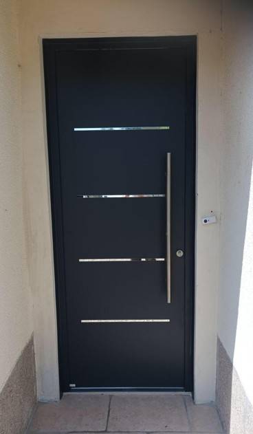 Notre technicien s'est rendu sur place afin de constater la configuration mais aussi dans le but de sélectionner avec notre client le matériaux et le modèle qui pourrait plaire. Le client à souhaité opter pour l'aluminium pour son aspect moderne et inaltérable. Quant au modèle de porte, le coup de coeur s'est fait pour la COTIM 11 de chez ZILTEN. Une porte résolument moderne et sobre de part sa teinte gris anthracite.
