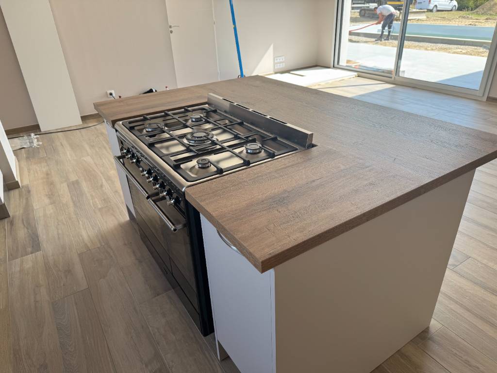 Les matériaux ont été sélectionnés selon des critères techniques précis : résistance à la chaleur, à l’humidité et à l’usure, facilité d’entretien et pérennité dans le temps. Les façades et plans de travail ont été choisis pour leur stabilité et leur cohérence avec l’architecture existante.