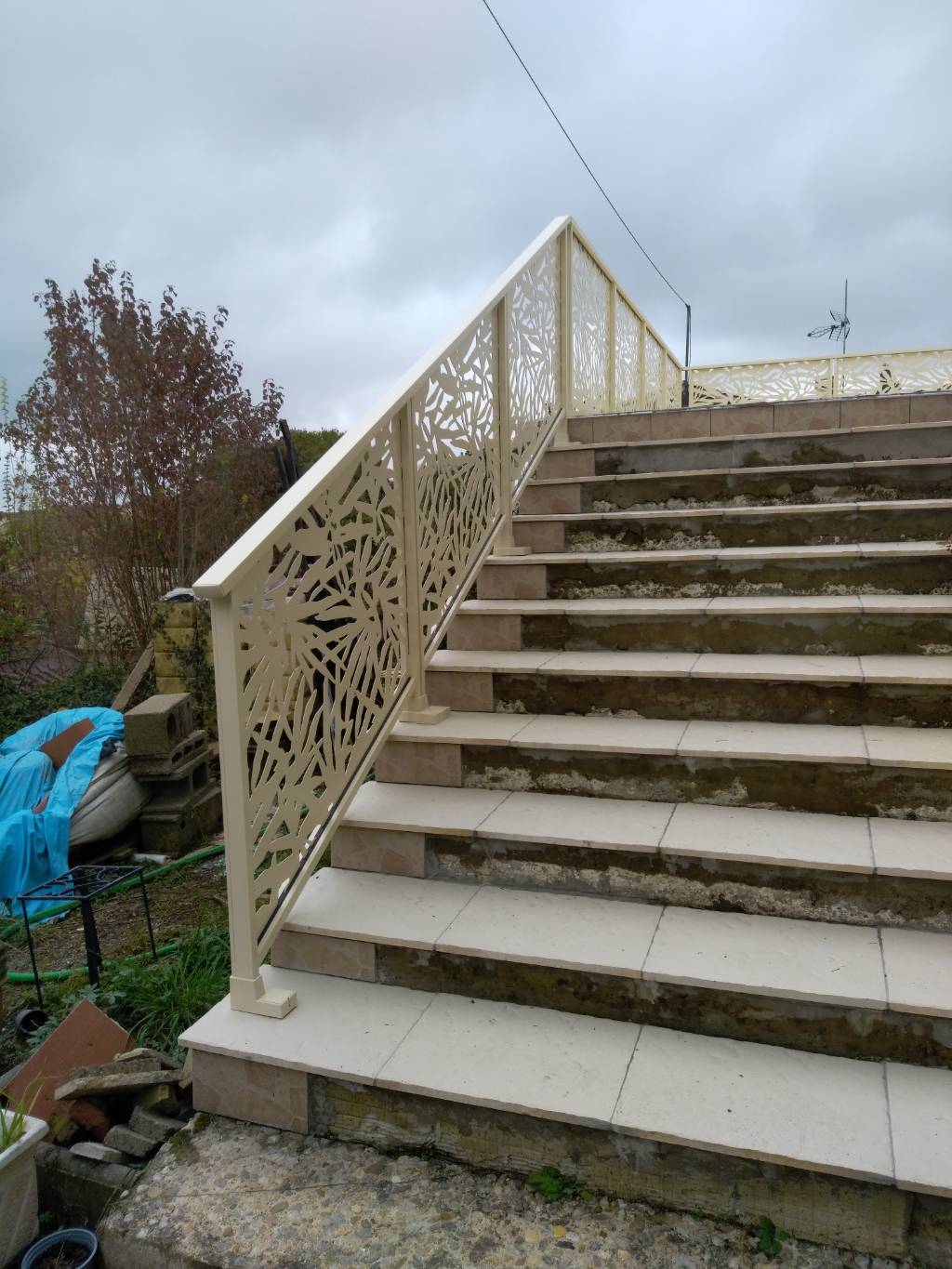 Installer un garde-corps Océanis demande une pose rigoureuse pour respecter la continuité visuelle des motifs découpés au laser. Nos équipes ont veillé à ce que la structure s'intègre harmonieusement à la façade, transformant une obligation de sécurité en un véritable atout architectural pour cette propriété située à Auvillar.