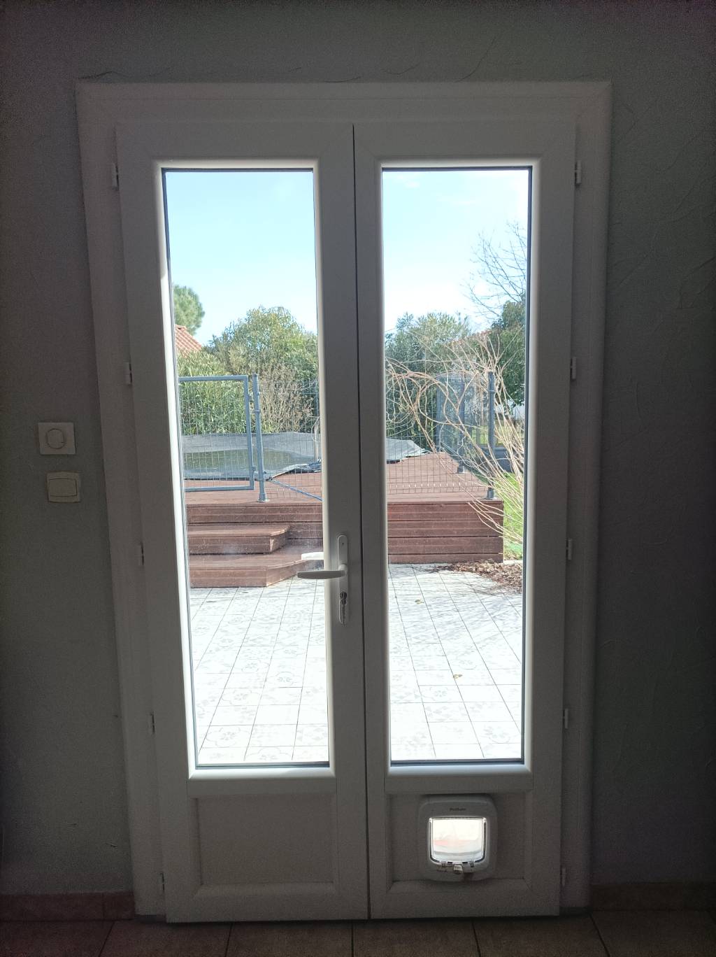 Rénovation durable à Golfech : Étanchéité et sécurité d'une porte-fenêtre avec chatière intégrée