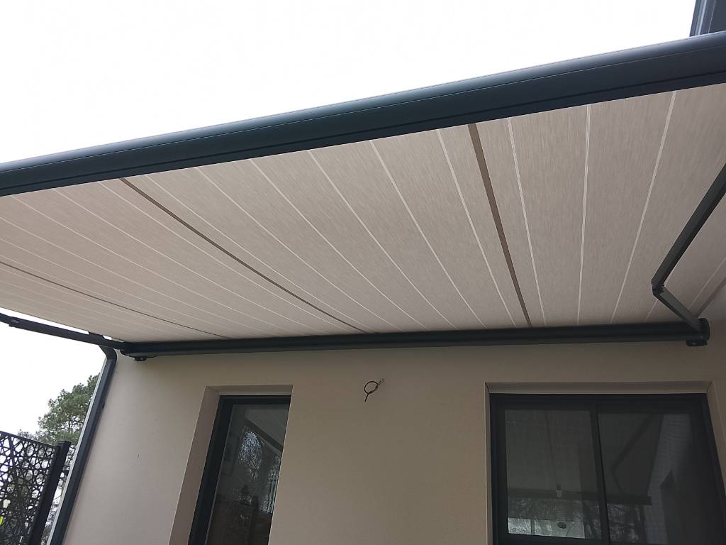 Pose d'un store banne avec coffre intégral solaire