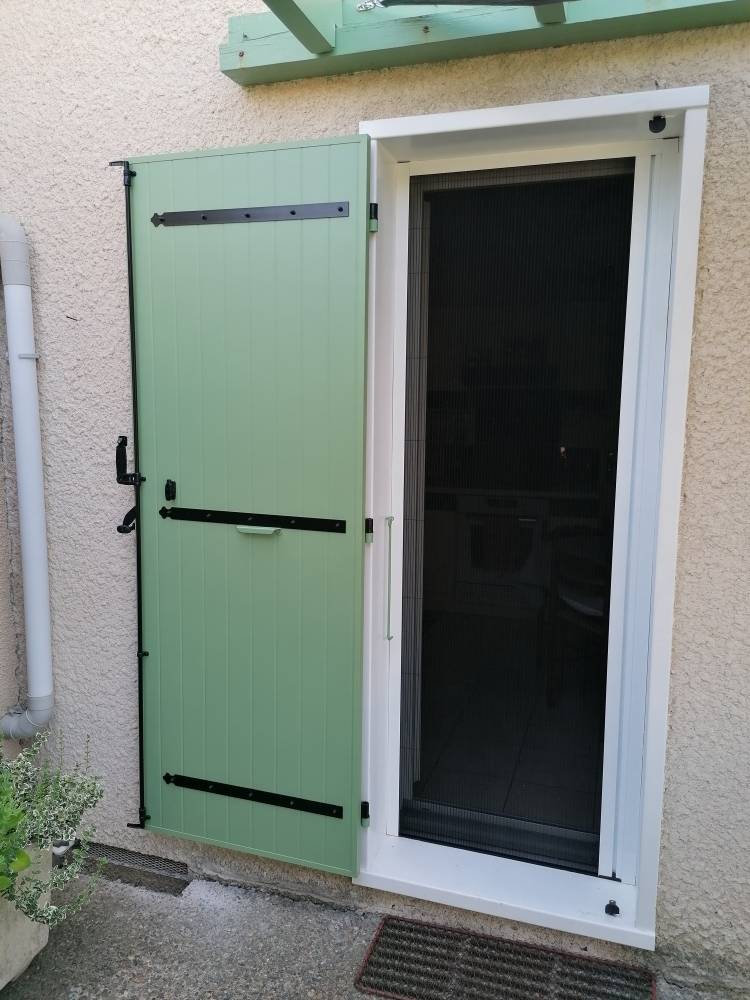 Selon la configuration des ouvertures, les volets ont été installés en version un ou deux vantaux, avec un système de fermeture par espagnolette autobloquante garantissant une manœuvre simple, efficace et sécurisée. Les pentures en aluminium et les arrêts marseillais assurent un maintien fiable en position ouverte, tandis que les réglages réalisés en fin de pose garantissent un fonctionnement fluide et précis.