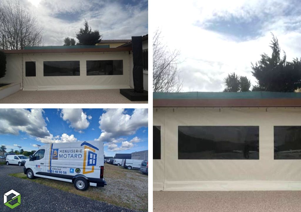Nous sommes intervenus pour la confection et la pose d’une bâche extérieure sur mesure destinée à fermer et protéger un espace couvert existant. Cette réalisation permet de créer un espace abrité, protégé du vent et des intempéries, tout en conservant la luminosité naturelle.